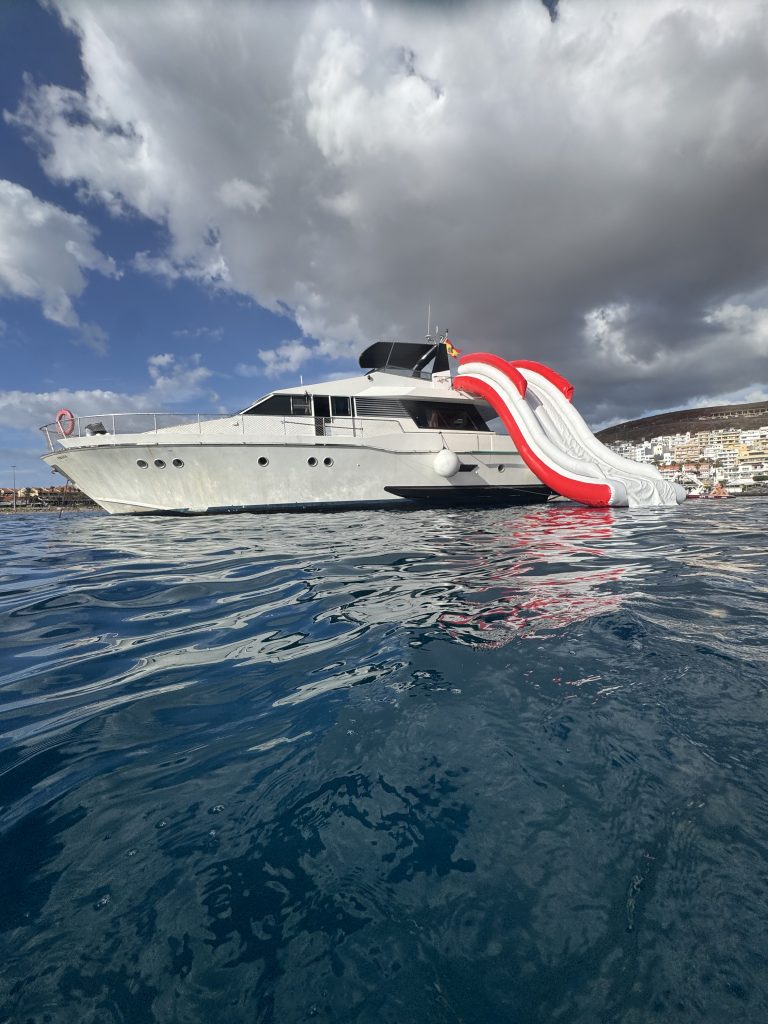 - 3,5 órás charter: Szórakoztató és egyszerű módját keresi az óceán élvezetének? Ez a 3,5 órás privát charter tökéletes családok vagy csoportok számára, akik szeretnének egy nyugodt bevezetést Tenerife lenyűgöző tengerpartjához. Ússzon, sznorkelezzen, és élvezze a tengeri szellőt, miközben a lehető legtöbbet hozza ki a fedélzeti vízicsúszdánkból - a gyerekek és a felnőttek kedvence!