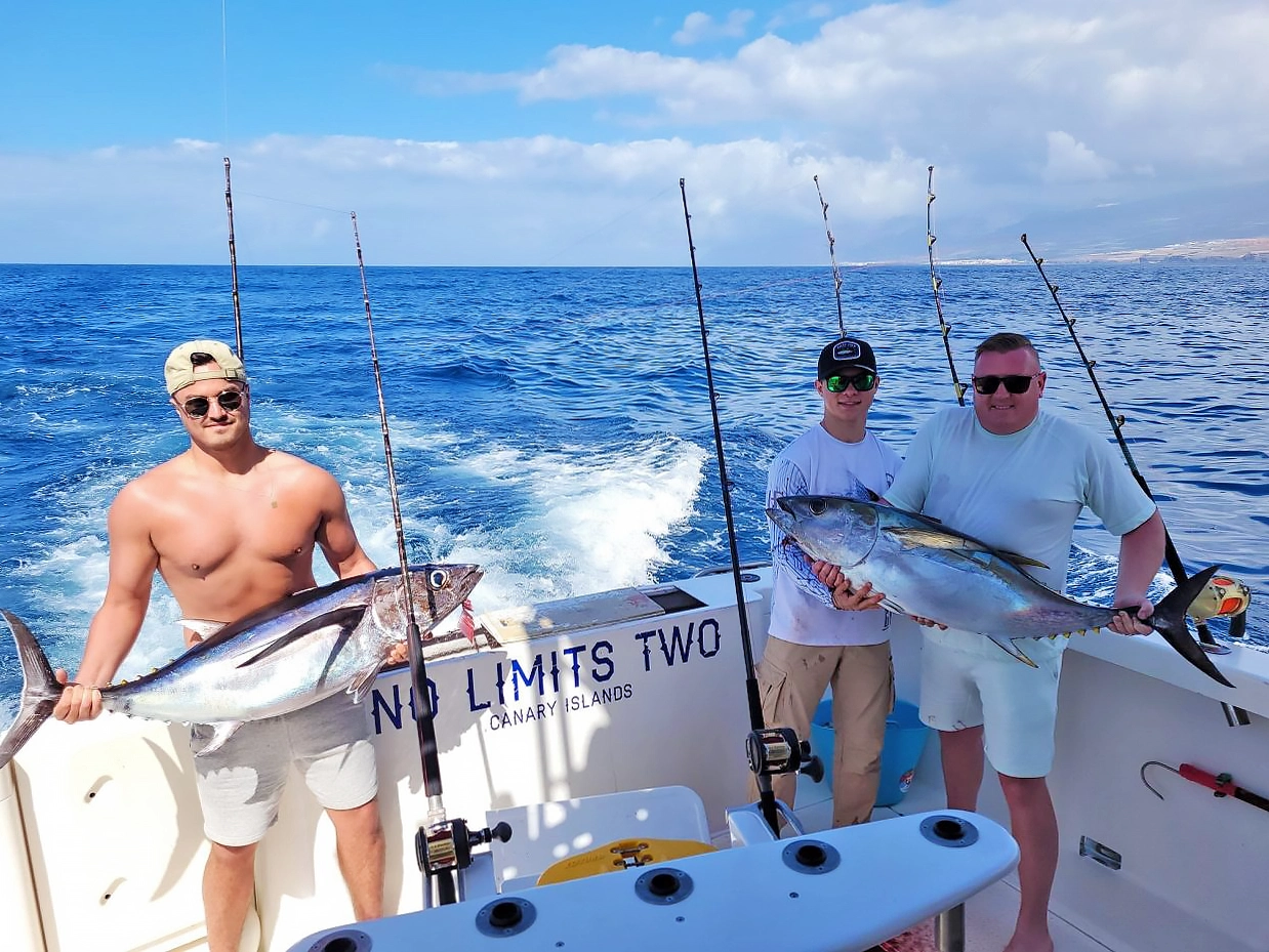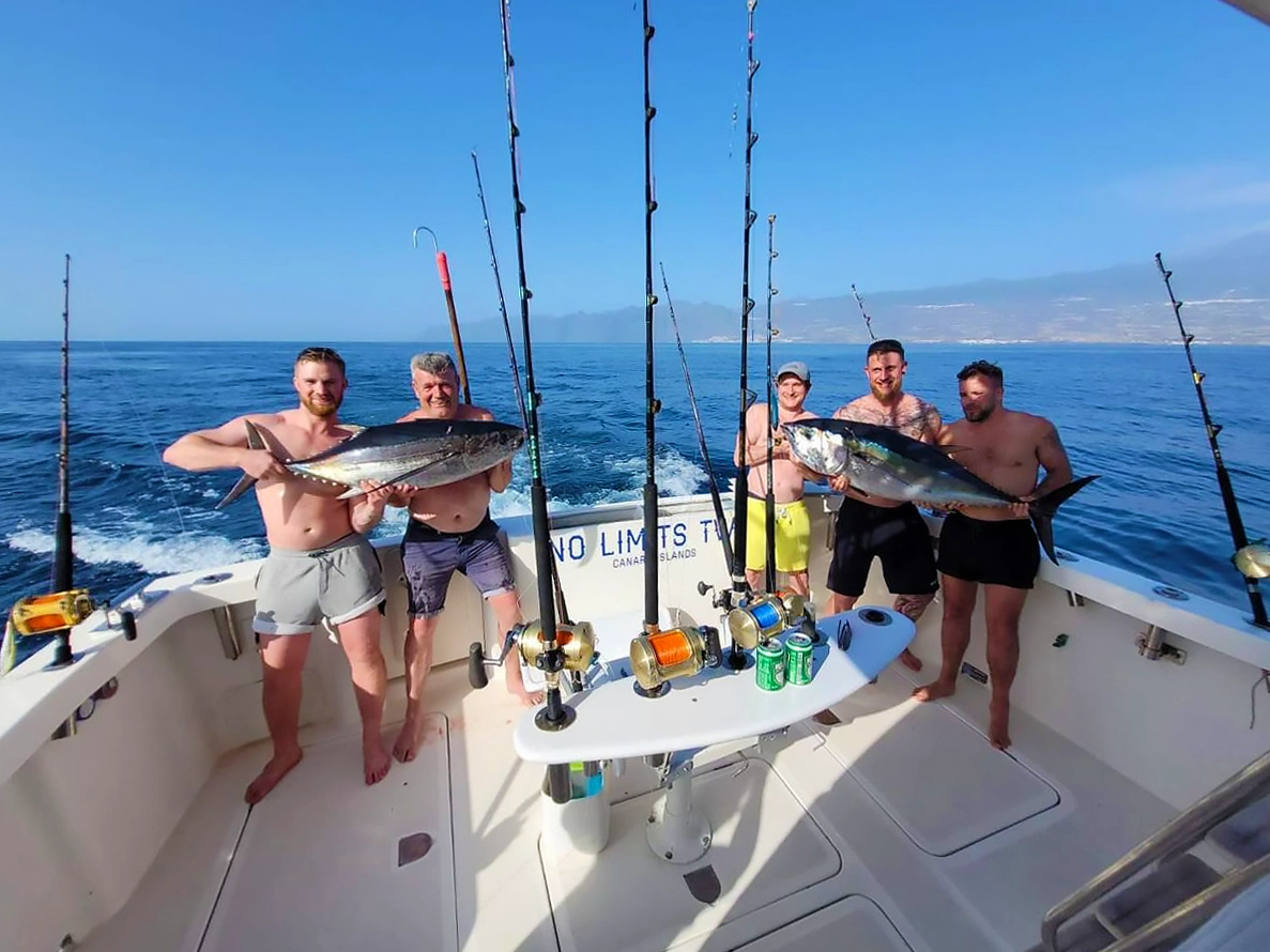 У CanaryVIP ми ставимо на перше місце ваш комфорт і зручність під час риболовної екскурсії на Тенеріфе. На борту No Limits, спеціально обладнаного рибальського судна, ви знайдете всі зручності, необхідні для дня на воді. Зручні сидіння і затінена зона захистять вас від сонця, а бортовий туалет забезпечить задоволення ваших потреб, не перериваючи риболовлю.